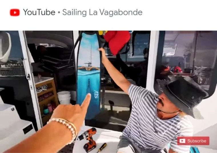 The pink and yellow repeating crab print that imitates fish scales was a brain child of Elaynas. She wanted fins to match her dive belt and I was happy to bring her idea to life. Naturally, we needed to create a design for Riley and I wanted to make something that tied in not only their new trimaran, but also the sport of free diving itself. If you’re not already following Elayna, Riley and their two children as they explore the world by boat on YouTube, do yourself a favor and head over to their site now! You can also check out their online shop and support the LaVagabond family below!
